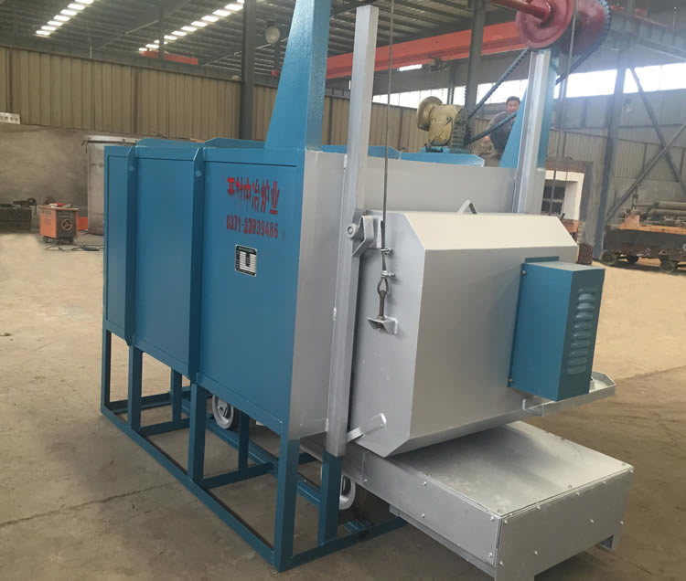 6、臺車框架采用型鋼焊接成形,其鋼性保證在滿負(fù)荷下不變形。內(nèi)用耐火磚砌筑,易碰撞部位和承重部位用重質(zhì)磚砌筑,增強(qiáng)爐襯結(jié)構(gòu)強(qiáng)度,臺車的行走采用自行式結(jié)構(gòu),由減速機(jī)傳動鏈輪帶動走輪在軌道上行走。臺車密封采用自動迷宮式結(jié)構(gòu)和軟接觸雙密封,臺車進(jìn)入爐內(nèi)通過凸輪及滾輪斜面作用,自動升起后進(jìn)行密封。臺車開出,該密封槽自動落下,密封槽內(nèi)密封砂經(jīng)加滿后即不必經(jīng)常添加。臺車開出,爐門升降均為電動控制,配有電磁制動器,可防止慣性撞擊爐體,并且連鎖控制,即稍打開爐門后,自動切斷加熱元件,同時恢復(fù)臺車行走機(jī)構(gòu)電源。爐門關(guān)閉到位后,自動切斷臺車行走機(jī)構(gòu)電源,同時恢復(fù)加熱元件電源。